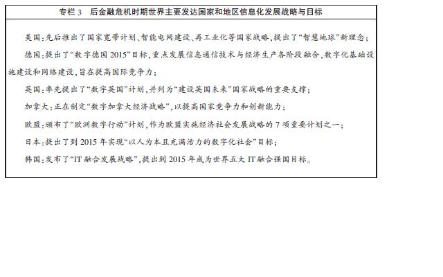 “十二五”時期,世界經濟進入了后金融危機時期,經濟競爭格局正在發生深刻變革。以創新、融合、轉型為特征的信息化發展逐漸成為世界各國新一輪戰略部署的重點。世界主要發達國家紛紛重新謀劃國家信息化發展藍圖,將信息化作為破解發展難題、搶占未來發展制高點的新的國家戰略思維,加速向信息社會轉型,謀求重塑國家信息優勢。新興市場國家和發展中國家積極抓住信息通信技術蓬勃發展契機,推動信息化應用和普及,力圖在某些領域實現跨越式發展和后發優勢,與發達國家共享信息化帶來的實惠。促進經濟發展方式轉變、重點產業結構調整、新興產業培育、政府管理模式創新、醫療社保改革、教育水平提升、信息基礎設施建設普及和升級等成為后金融危機時期信息化發展的重要內容。與此同時,信息化領域圍繞新一代信息技術開發應用的追趕與競爭將更加激烈,圍繞網絡空間的信息獲取、利用、控制的斗爭將成為國家主權利益爭奪的新焦點。網絡與信息安全形勢更趨復雜,與經濟安全、社會穩定的關系更加密切。