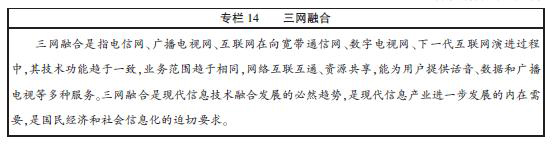 積極推進三網融合應用試點。加強網絡建設統籌規劃,鼓勵和引導電信、廣電等部門協同建設,優化和升級改造基礎網絡,推動信息基礎設施共享。以廣電和電信業務雙向進入為重點,促進互聯互通和業務融合,探索與其他社會基礎網絡的融合發展。加強城鎮小區和商住、辦公樓建設改造中的寬帶網絡共享設施建設和有效利用。