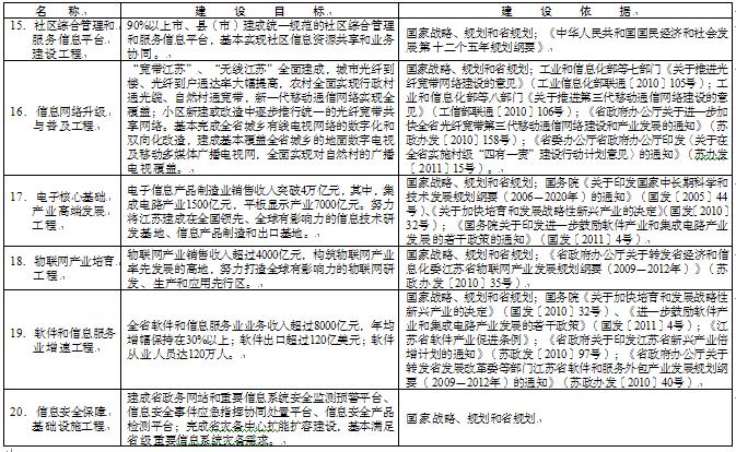 大力發展新一代信息技術產業。以新一代移動通信、下一代互聯網、三網融合、物聯網、云計算、集成電路、新型顯示、高端軟件、高端服務器和信息服務為重點,著力培育發展信息技術戰略性新興產業,把江蘇初步建成全球有影響力的電子信息產品設計、制造和出口基地,物聯網研發、生產和應用先行區及全國集成電路設計與制造中心。