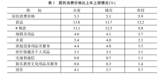 物價調控取得積極成效。保障供應、疏暢流通、加強監管、健全機制,加大價格調節專項資金投入力度,建設平價商店促進農產品產銷對接,切實控制物價漲幅,下半年以后物價漲勢明顯趨緩。全年居民消費價格比上年上漲5.3%,漲幅比上半年回落0.4個百分點。食品價格上漲11.8%。其中,豬肉上漲30.1%、油脂上漲13.7%、鮮蛋上漲15.5%、禽上漲14.4%、鮮菜上漲1.6%。工業生產者出廠價格上漲6.2%,其中紡織業上漲12.4%、化學原料及化學制品業上漲9.5%、醫藥制造業上漲3.6%、化學纖維制造業上漲11.2%、黑色金屬冶煉及壓延加工業上漲12.1%、有色金屬冶煉及壓延加工業上漲11.9%、電氣機械及器材制造業上漲5.6%。工業生產者購進價格上漲8.9%。農業生產資料價格上漲12.6%。
