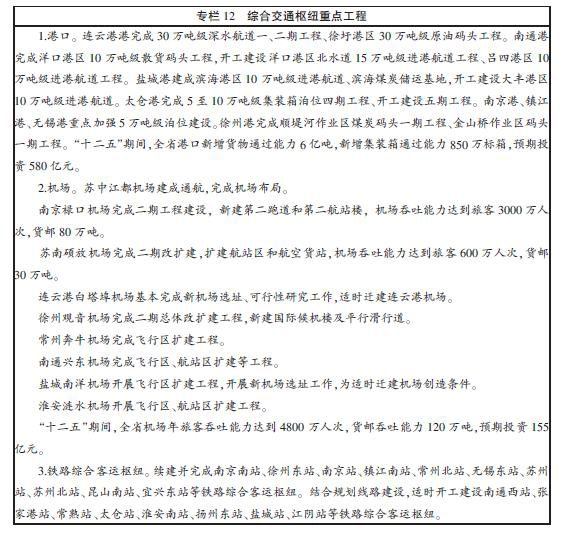 江蘇省“十二五”綜合交通運輸體系發展規劃