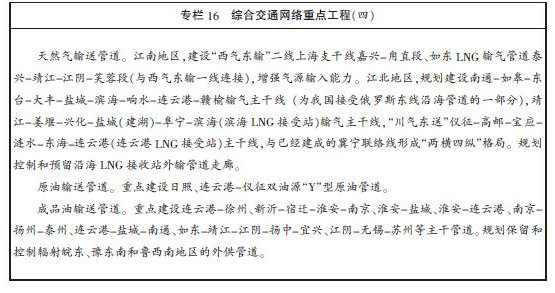 天然氣管網。利用沿海地區港口條件,加快推進如東、連云港、濱海等地LNG(液化天然氣)項目,建設沿海天然氣接收儲備基地,強化配套管網建設。結合國家“西氣東輸”、“川氣東送”等工程,布局建設江南、江北“兩片互聯、片內互通”的主干管網輸送體系,以及通達縣城、重要用戶的天然氣支線,形成多氣源、多形式供氣格局。