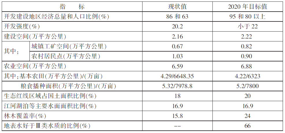 表1 國土空間開發的規劃指標
