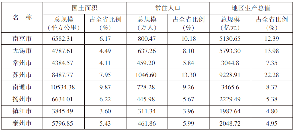 我省優化開發區域指長三角(北翼)核心區,也是國家層面的優化開發區域,包括南京、無錫、常州、蘇州、鎮江的大部分地區及南通、揚州、泰州的城區,人口和GDP分別占全省的39%和60%(圖27)。