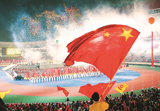 2005年10月,第十屆全國運動會在江蘇成功舉辦,江蘇運動健兒獲得56塊金牌,居全國第一。圖為十運會開幕式現場。星光 攝