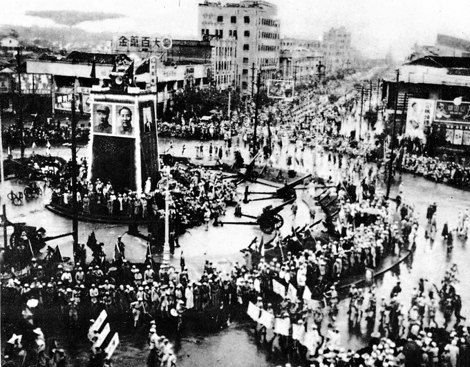 1949年10月1日,中華人民共和國成立,開啟了中華民族歷史的新紀元。圖為南京軍民舉行盛大游行,慶祝中華人民共和國成立和中央人民政府成立。鄒健東 攝
