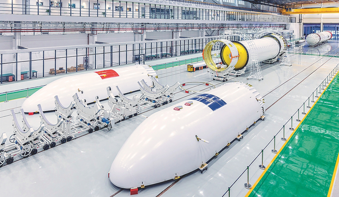 江蘇堅持以產業科技創新為引領,緊盯推進“智改數轉”,深入實施制造強省“八大行動”,制造業高質量發展取得明顯成效。2023年4月,天兵科技“天龍二號”成功發射,創造了全球民營液體煤油火箭首飛即成功等8項商業航天紀錄。圖為2024年拍攝的位于江蘇張家港市的天兵科技智能制造基地。田兵 攝(天兵科技供圖)