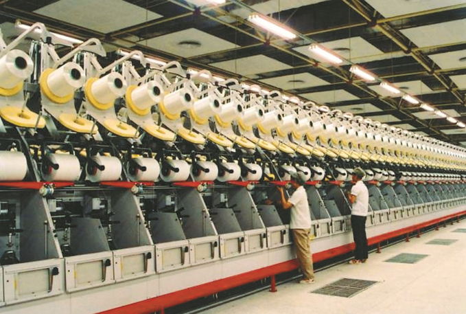 20世紀90年代,江蘇一批企業進軍資本市場,充分發揮市場配置資源功能。圖為1993年,江蘇第一家上市公司無錫太極實業公司紡捻織浸膠簾帆布生產線。顧祚維 攝
