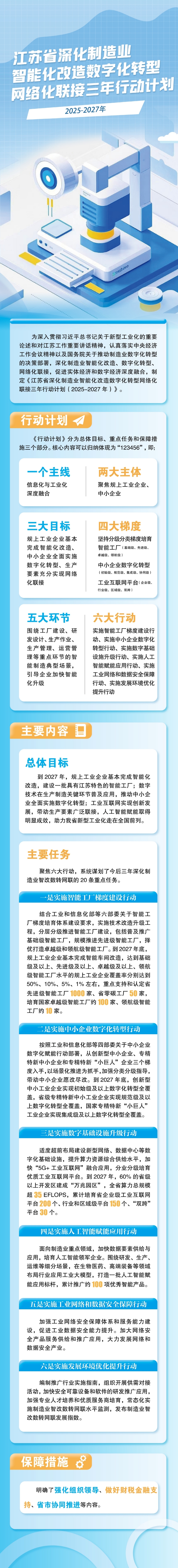 省政府辦公廳關于印發江蘇省深化制造業智能化改造數字化轉型網絡化聯接三年行動計劃(2025-2027年)的通知