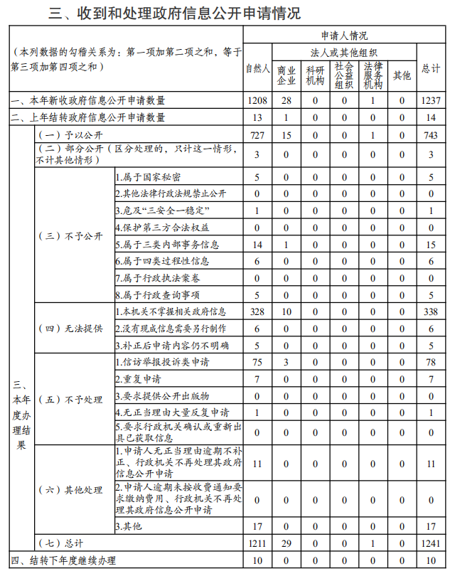 (二)提高依申請(qǐng)公開(kāi)辦理質(zhì)量。嚴(yán)格規(guī)范依申請(qǐng)公開(kāi)辦理程序,持續(xù)抓好省政府辦公廳關(guān)于辦理程序和答復(fù)規(guī)范有關(guān)要求落實(shí)。全年辦理省政府及省政府辦公廳政府信息公開(kāi)申請(qǐng)1241件,其中自然人申請(qǐng)件1211件,占比97.6%,法人或其他組織申請(qǐng)件30件;予以公開(kāi)及部分公開(kāi)746件,占比60.1%;處理與省政府有關(guān)的信息公開(kāi)復(fù)議24件、行政訴訟案件12件。完善協(xié)調(diào)聯(lián)動(dòng)機(jī)制,加強(qiáng)與職能部門(mén)的協(xié)商對(duì)接和信息共享,做好依申請(qǐng)公開(kāi)工作指導(dǎo)提示,依法保障人民群眾信息需求。