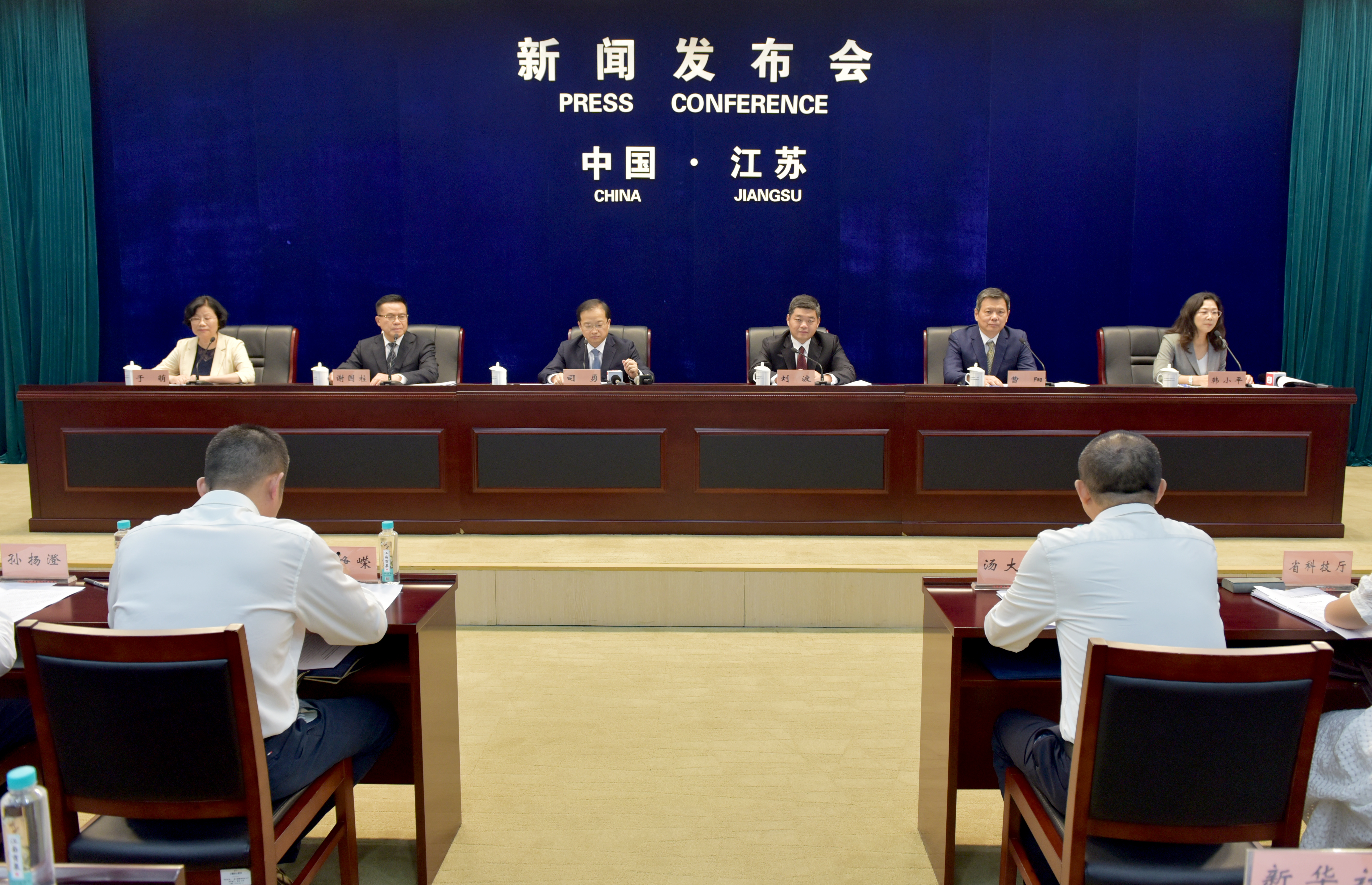 韓小平(省政府辦公廳新聞協調處二級調研員):記者朋友們,大家下午好!歡迎出席省政府新聞發布會。今年8月,國務院正式批復《中國(江蘇)自由貿易試驗區生物醫藥全產業鏈開放創新發展方案》,這充分體現了中央對江蘇生物醫藥產業發展的關心和支持。為貫徹落實好中央部署要求,最近,省政府印發《中國(江蘇)自由貿易試驗區生物醫藥全產業鏈開放創新發展專項實施方案》(以下簡稱《專項實施方案》)。為幫助大家更好地了解相關情況,今天我們高興地邀請到省商務廳廳長、省自由貿易試驗區工作辦公室主任司勇先生,省科技廳副廳長劉波先生,南京海關副關長謝國柱先生,省工業和信息化廳二級巡視員曹陽先生,省藥品監督管理局藥品安全總監于萌女士,請他們介紹《專項實施方案》的有關情況,并回答大家關心的問題。此外,省商務廳黨組成員、省自由貿易試驗區工作辦公室副主任湯大軍先生,南京江北新區自貿區綜合協調局局長張崢嶸先生,蘇州工業園區管委會副主任孫揚澄先生,連云港經濟技術開發區管委會副主任曹波先生也應邀出席發布會并在前排就座。我是省政府辦公廳新聞協調處韓小平。