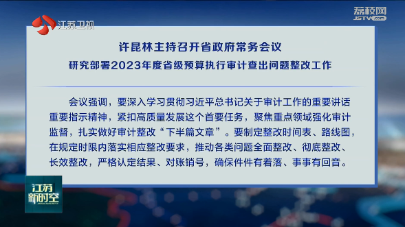 8月23日上午,省政府召開常務(wù)會議,研究部署2023年度省級預(yù)算執(zhí)行審計查出問題整改工作,審議《江蘇省“兩高”項目管理目錄(2024年版)》《江蘇省城建檔案管理辦法》。省長許昆林主持會議并講話。查看全文 >