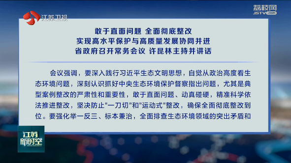• 深入學(xué)習(xí)貫徹習(xí)近平總書記對(duì)江蘇工作重要講話重要指示精神,認(rèn)真落實(shí)李強(qiáng)總理在江蘇調(diào)研時(shí)的講話要求,審議《江蘇省空氣質(zhì)量持續(xù)改善行動(dòng)計(jì)劃實(shí)施方案》,研究部署下一階段重點(diǎn)工作。