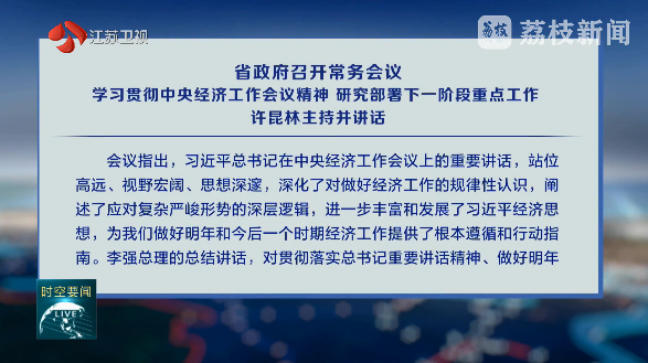 • 深入學習貫徹習近平總書記重要講話和中央經濟工作會議精神,認真落實李強總理講話要求,按照省委常委會會議部署,研究安排貫徹落實工作。