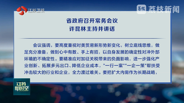 4月9日,省政府召開常務會議,深入貫徹落實習近平總書記對江蘇工作重要講話精神,審議《江蘇省數字經濟高質量發展三年行動計劃(2025—2027年)》《江蘇省關于進一步支持專精特新中小企業高質量發展的若干政策意見》《江蘇省人民政府2025年度重大行政決策事項目錄》《“品質江蘇”建設行動方案》,分析研究當前外貿形勢,部署下一階段重點工作。查看全文 >