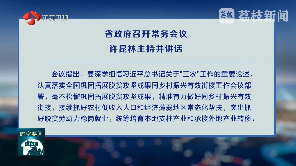 6月11日下午,省政府召開常務(wù)會(huì)議,深入貫徹落實(shí)習(xí)近平總書記重要講話重要指示精神,學(xué)習(xí)新修訂的《黨政機(jī)關(guān)厲行節(jié)約反對(duì)浪費(fèi)條例》,落實(shí)全國(guó)鞏固拓展脫貧攻堅(jiān)成果同鄉(xiāng)村振興有效銜接工作會(huì)議、2025年度長(zhǎng)三角地區(qū)主要領(lǐng)導(dǎo)座談會(huì)部署,審議《江蘇省支線航道網(wǎng)規(guī)劃》,安排下一階段重點(diǎn)工作。查看全文 >